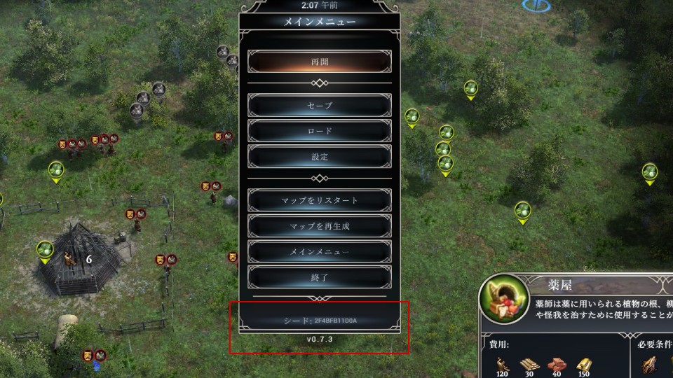 シードを共有する場合、現在のマップシードとゲームバージョンはポーズメニューの下部に表示されるので、これを投稿フォームに記入して投稿してください。