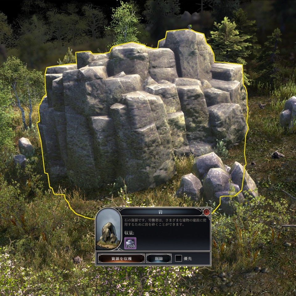 ゲームの中盤~終盤にかけては、舗道や強化防壁、強化城門の建設で大量に石を消費することになるので、集落の近くにメガロックがあるかどうかは発展速度に大きく関わってくることになる。