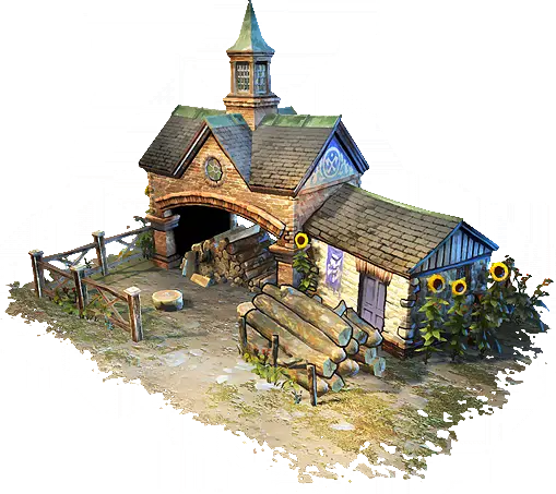 薪割り場をアップグレードした建物。アップグレードすることで年間の薪の生産量が1.5倍ほどに増加する。