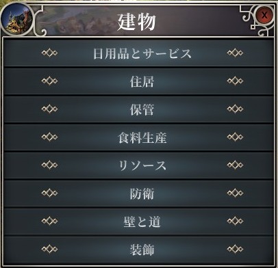 各カテゴリの建物にはそれぞれ多岐にわたる役割があり、集落の発展のためにはこれらの建物をバランスよく配置して利用する必要がある。また、それぞれ特定の条件をみたすことによって建物のアップグレードが可能となり、生産効率や好適度ボーナスの上昇など多くの恩恵を得られる。