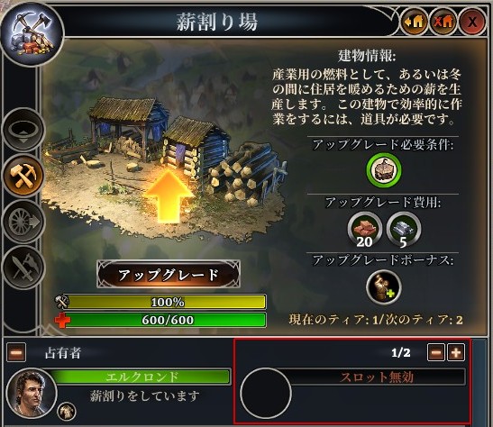 | 労役所 | 2 | 指定した範囲にある木と岩から丸太と石を集める。 | 3x3 | 4 | |
