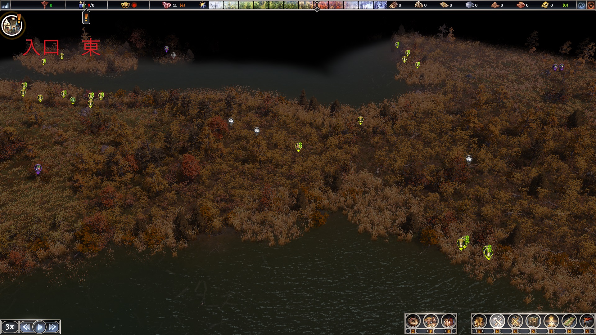 ・南西の入り口には、左右を湖で挟まれた山脈があり、タウンホールを移動しての山城練習も出来る。