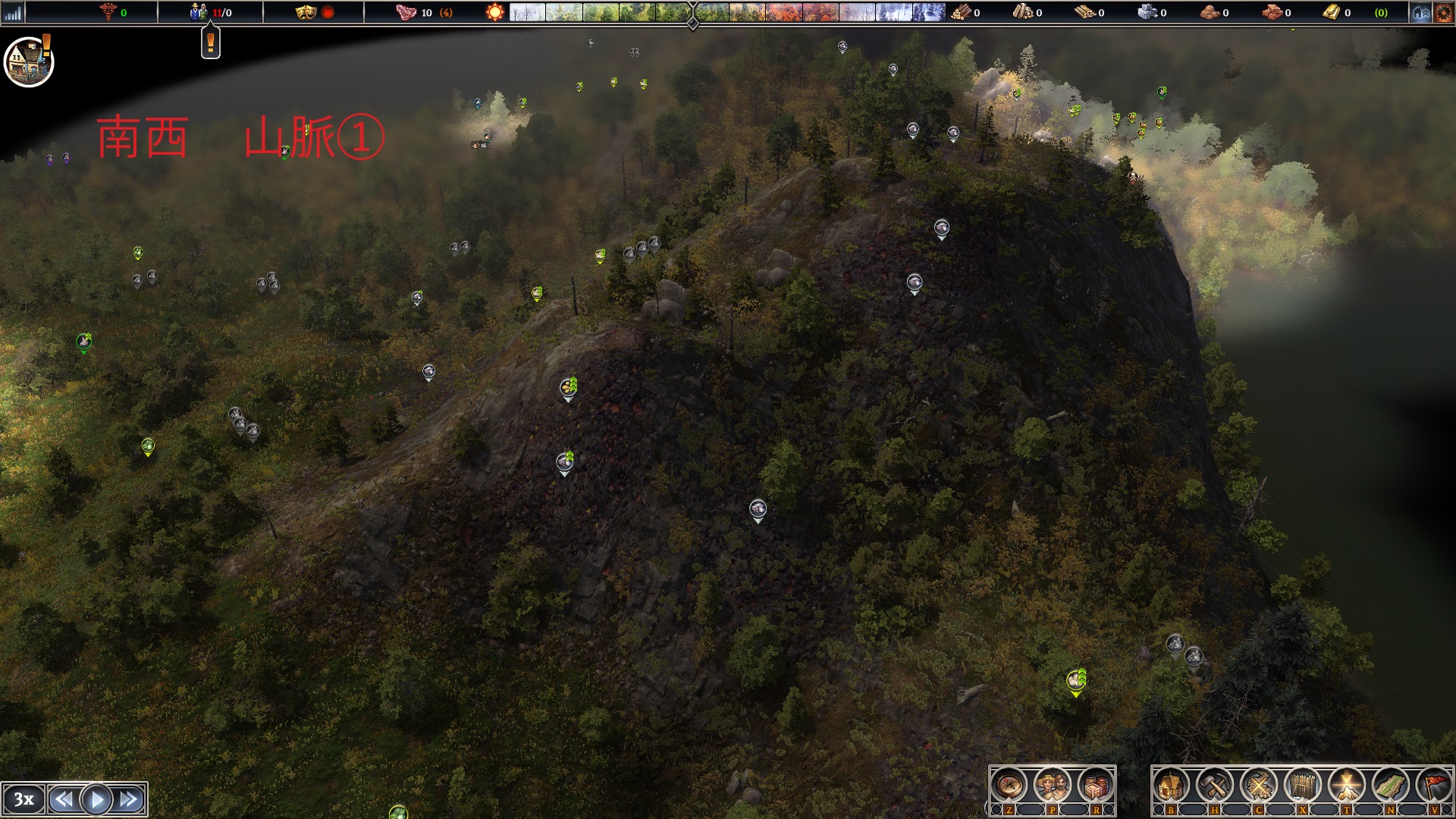 ・島内に1,000人分の住居とそれを支える食料施設(穀物、野菜、牛等)、原材料(木、粘土、砂、鉄等)の加工施設は建設可能。鉱石系の採掘は島外へ行く必要あり。