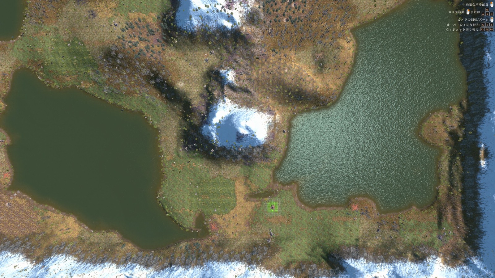 マップ中央に高山、全体に複数の巨大湖が分布していて、
