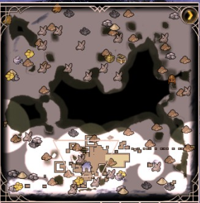 ・開始地点は下の陸地で、左端から中央まで探索済み(下の陸地の約三分の二)になるので、この時に略奪者の野営地が無く、また回収ポイント(廃棄された居住地)が多くなるようにすると序盤が楽になります。