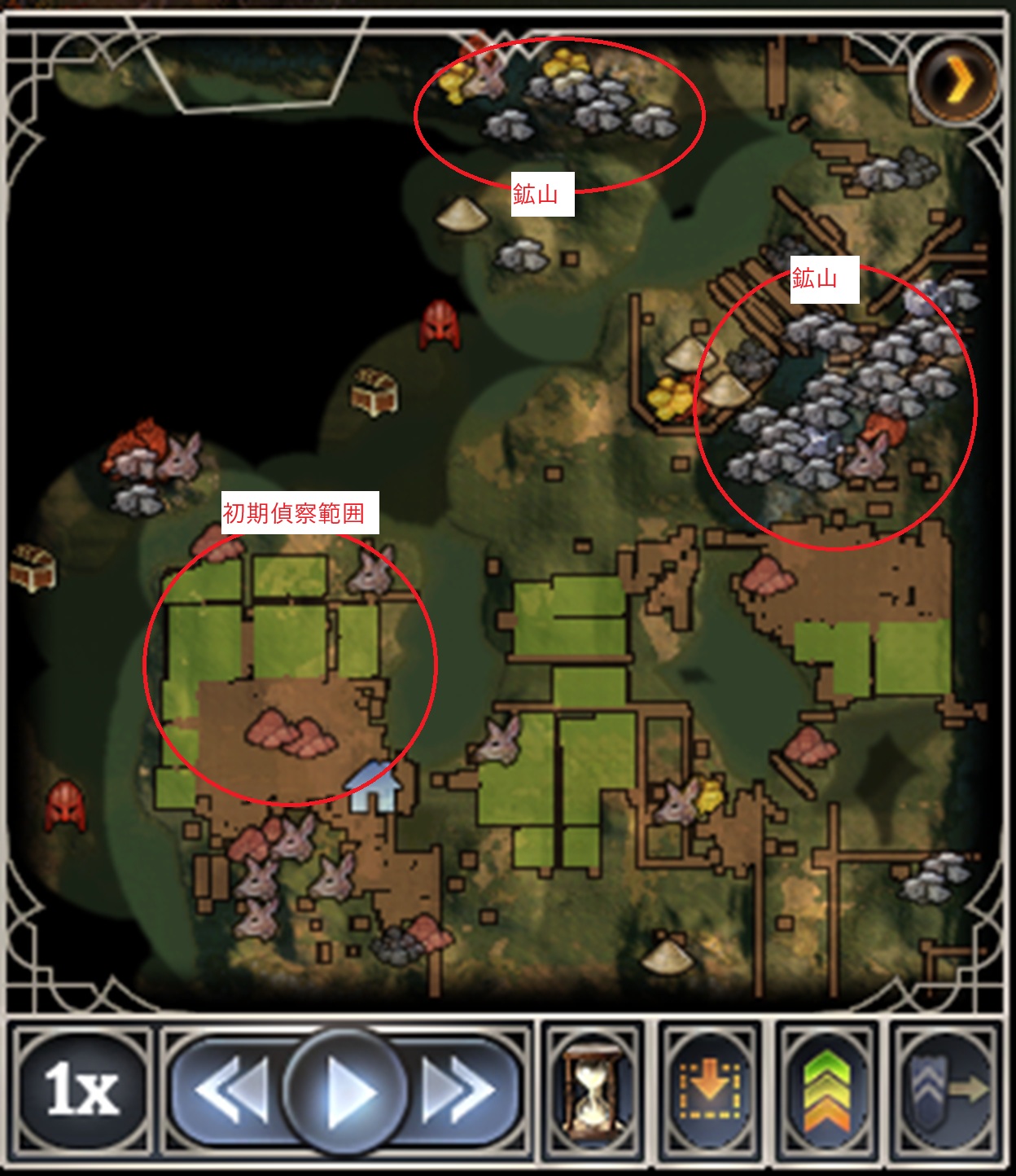 マップ東の鉱山は要塞化にちょうど良く、近くにスペースもあるため、