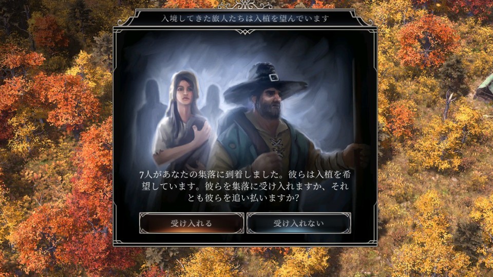 プレイ中にランダムで発生するイベントの1つとして、集落への入植希望者が7~9人ほど訪れることがある。希望を受け入れれば住民の数が即座に増えるが、状況に応じて断ることも可能。