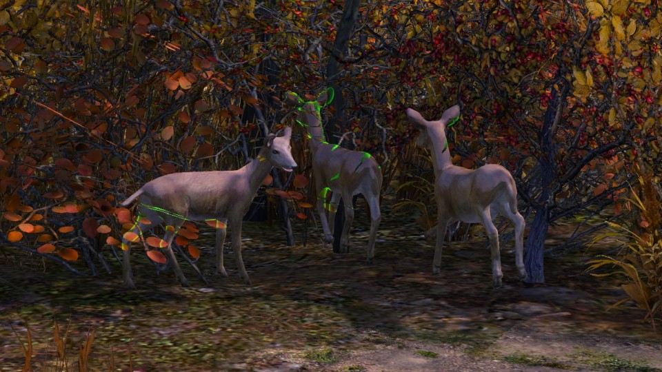 狩猟小屋を設置して作業範囲を指定すると、その範囲に入ってきたシカを自動で狩って屠殺し、肉や毛皮、獣脂を生産することができる。