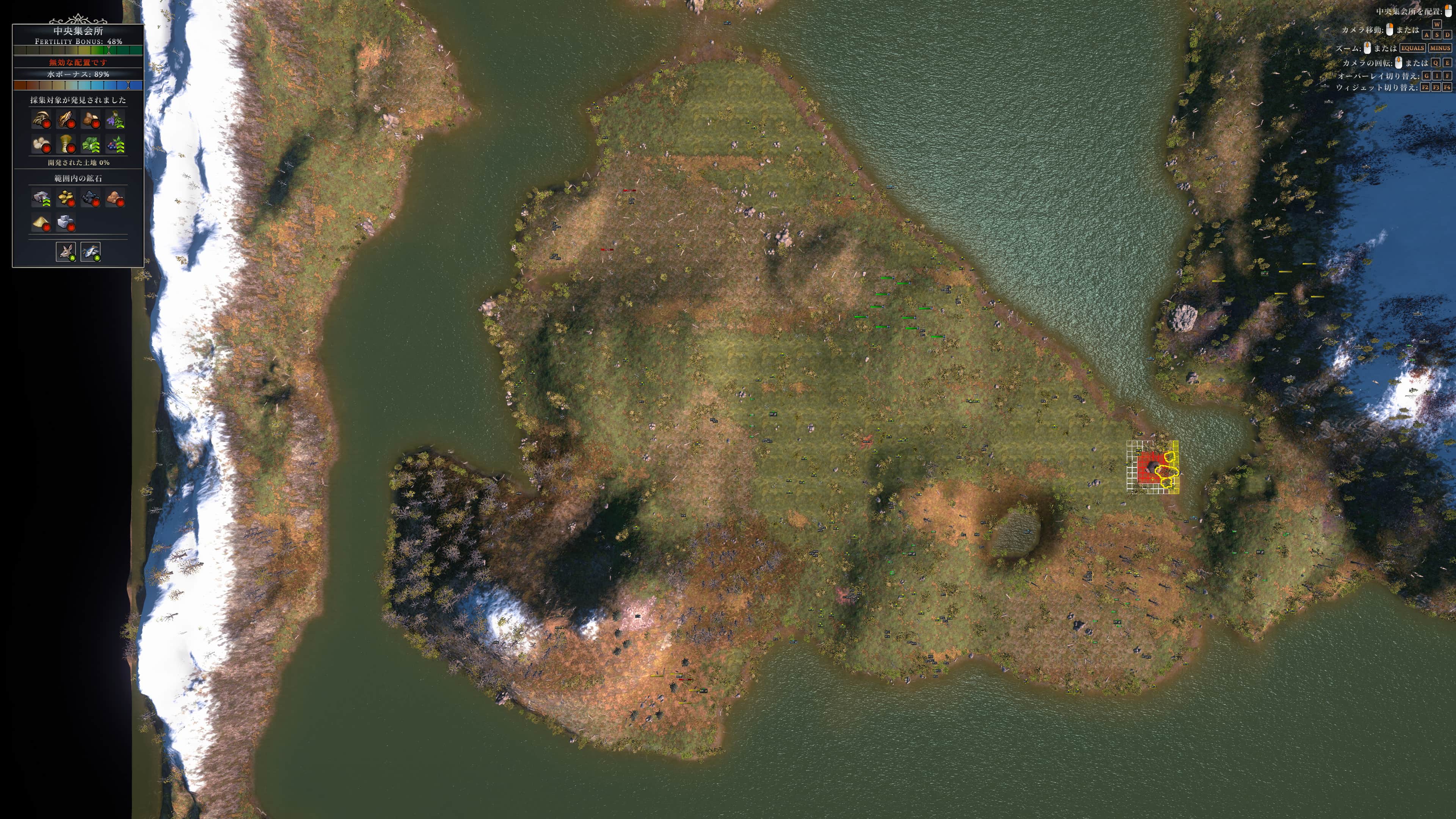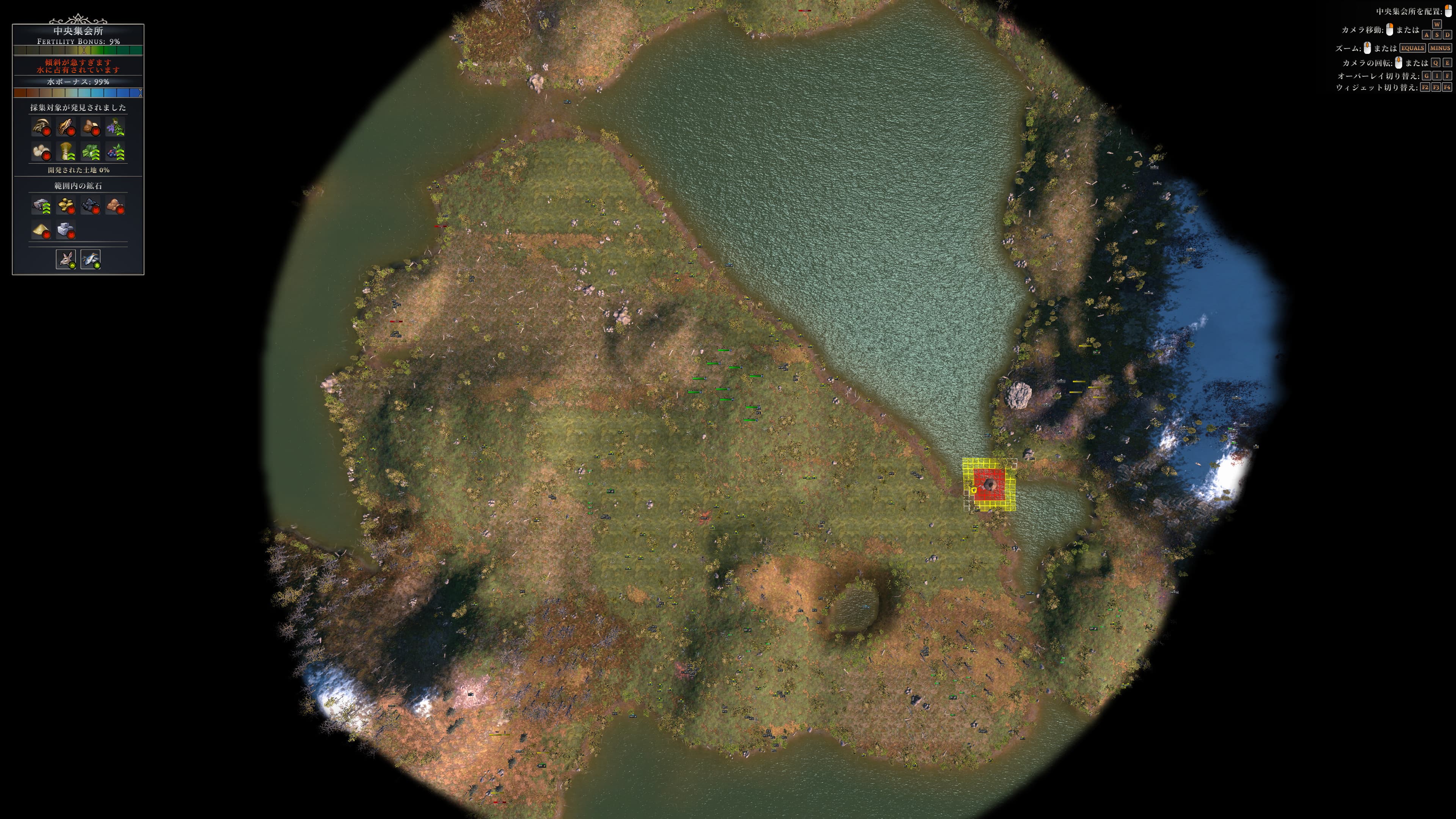 最初の島は400人前後が暮らせる広さ。最終的に右側の山と麓でも暮らせると良き。