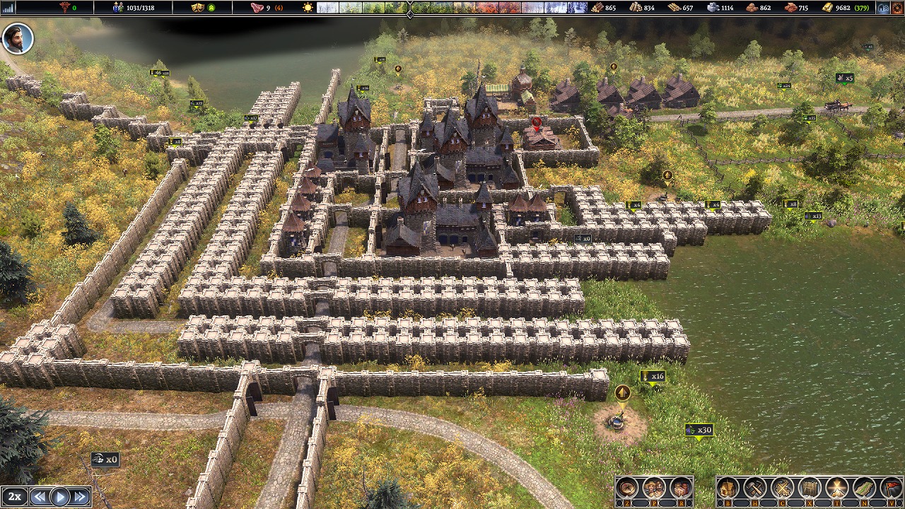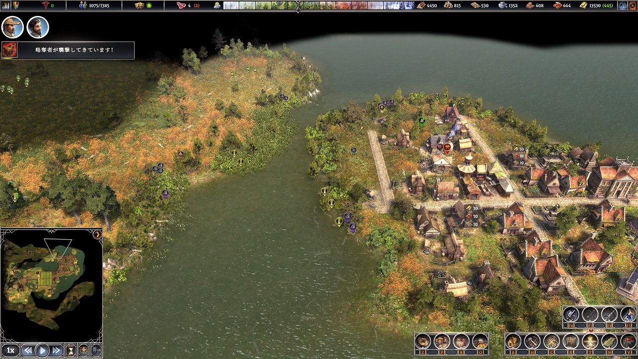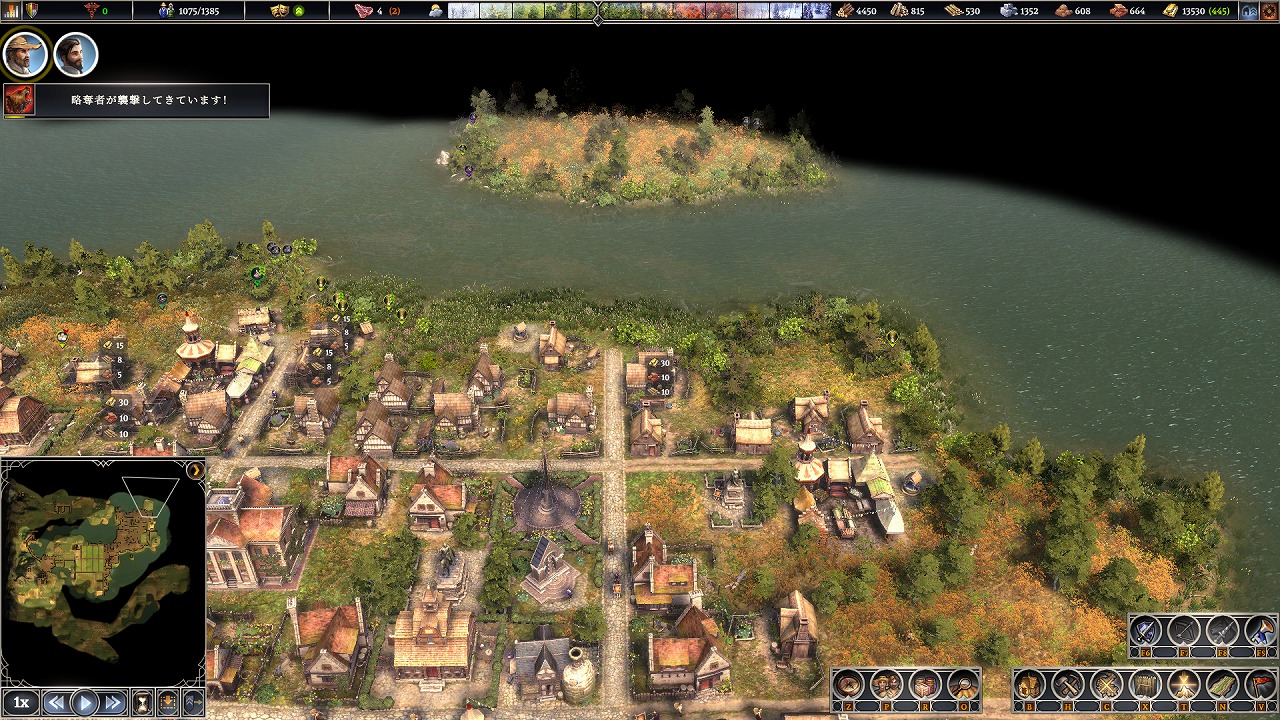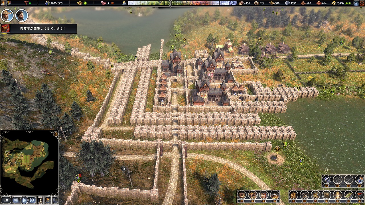 初期地点は、瓢箪のくびれ部分となり東側は周囲を湖で囲まれている島型。西側は、最西端が島の入り口となっており1箇所しかなく、広さも砦の防衛範囲程度です。