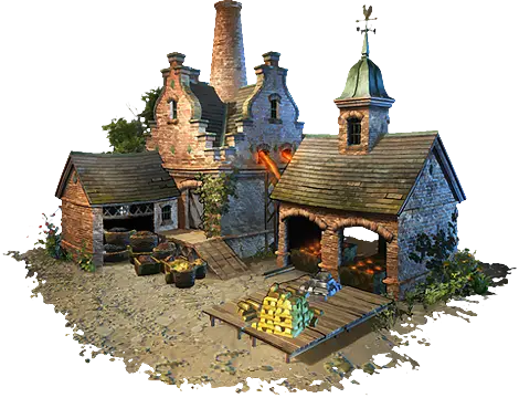 鋳造所をアップグレードした建物。作業者が増え生産速度も向上したことで、1棟でより多くの金のインゴットを生産できるようになっている。