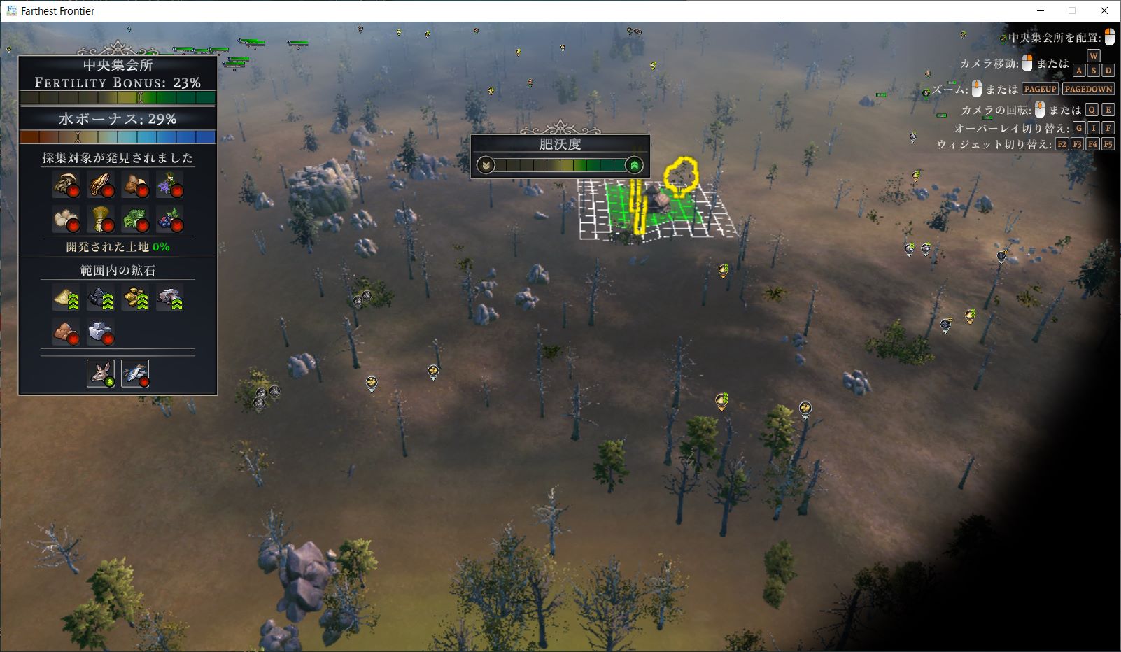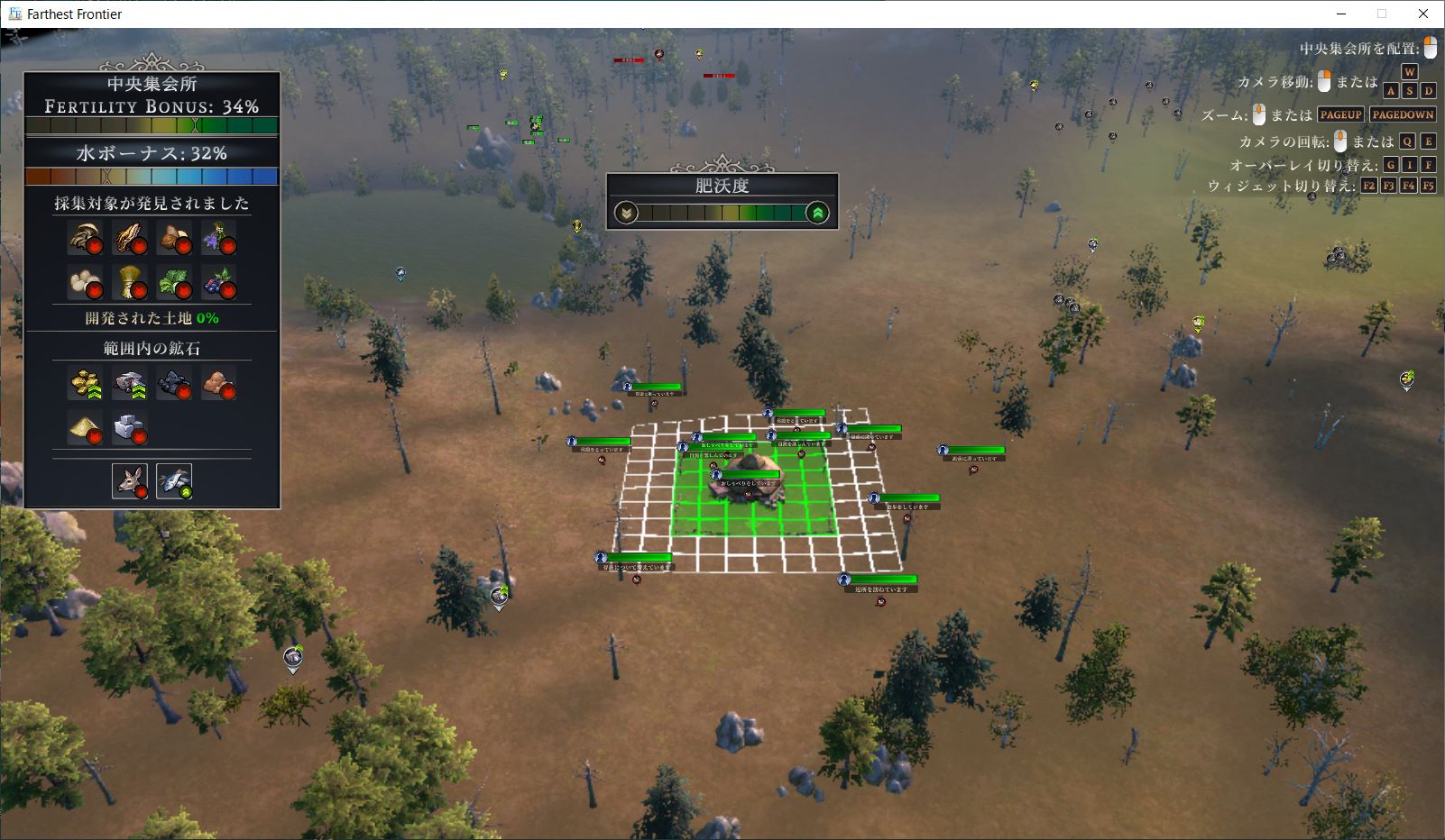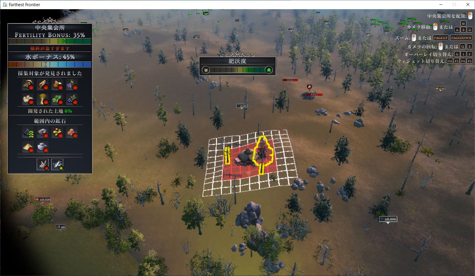 最初から見える南西の水場に1万の粘土があり、付近の肥沃度も40%近く、他の鉱石もあるので拠点にしやすいです