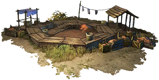 マップ上にランダムに生成される粘土堆積層から粘土を採取するための建物。粘土はティア2時点だと陶工の窯で陶器に加工するか一部の建物の建築素材として使うくらいだが、ティア3になってレンガを生産できるようになると建材としての需要が高まり、消費量が一気に増える。