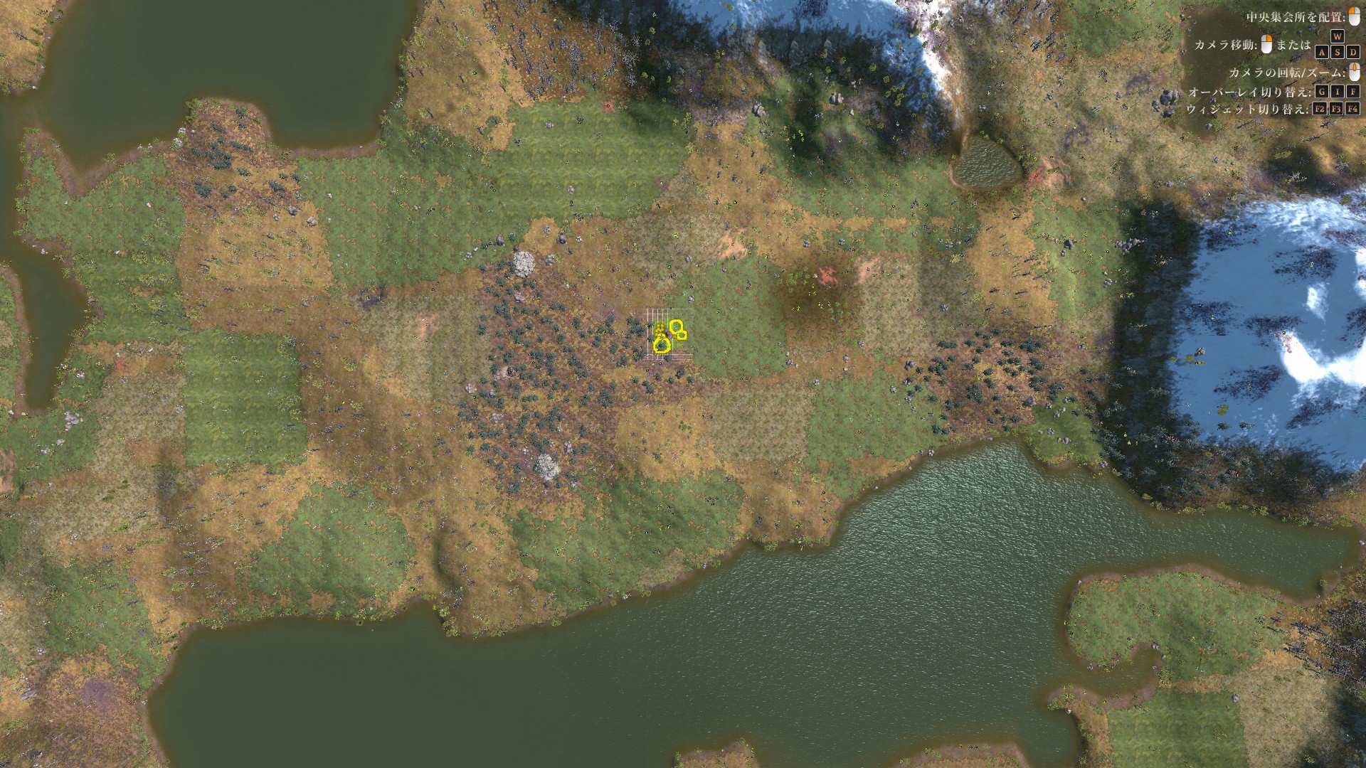 初期位置の南側は大きな湖で守られており、北と東は狭い隘路で守りやすく、西側も湖で挟まれているので塞ぎやすいが北と東に比べると若干守りにくさはある。