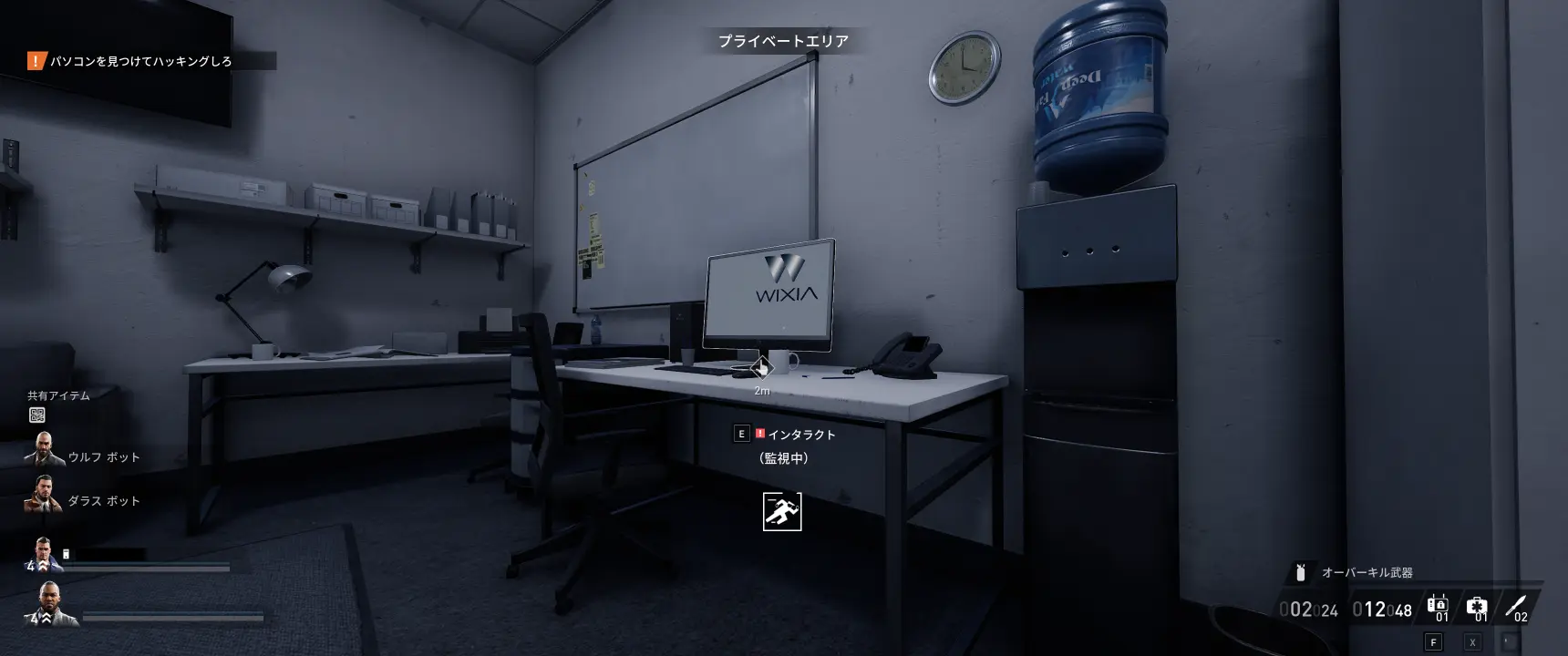 冷蔵トラックの準備が終わったら倉庫の2階に上がり、東西どちらかの部屋にあるPCをハッキングする。どちらのPCがインタラクト対象になるかはランダムに変わる。