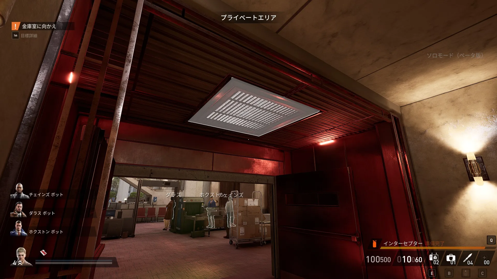 - (この時、目標には表示されないが金庫室手前のPCのハッキングが必要)