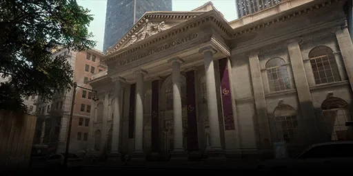 ロウアー・マンハッタンにあるゴールド&シャーク銀行ニューヨーク支店は、古き良きアメリカの資本主義の象徴よ。ここに強盗に入るわ。