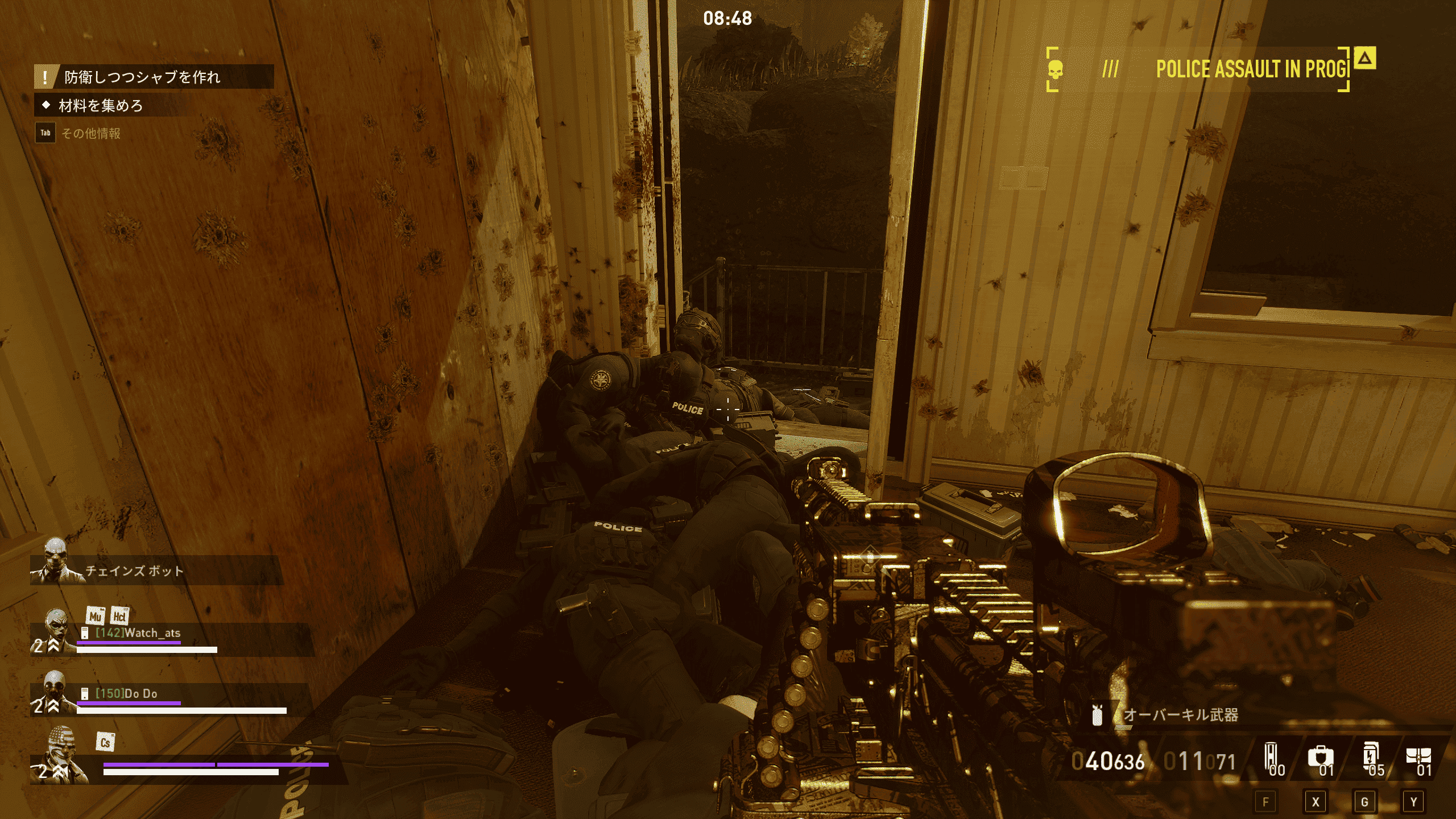 基本的にはアダプティブなのでチャンクを割られないよう物陰から掃射。カスタマイズにより中距離も行けます。チャンクがなくなっても清廉潔白とその他スキルによる6チャージ2個のアーマーバッグが耐久性を補助。味方が倒れても衛生兵スキルがあるので被弾なしで助けに行けます。狭い場所での大量の雑魚に極めて強いので味方を助けてあげましょう。シールド、クローカーはセカンダリで、ドーザーはRed Foxでどうにかしてください。