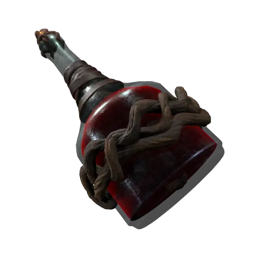 この瓶に入っている深紅の液体は、まるで異世界のエネルギーを吸い込んだかのような不気味な輝きを放っている。液体の中には、ねじれた樹皮の破片が浮遊しており、この神秘的な調合液の不穏で不気味な見た目に拍車をかけている。