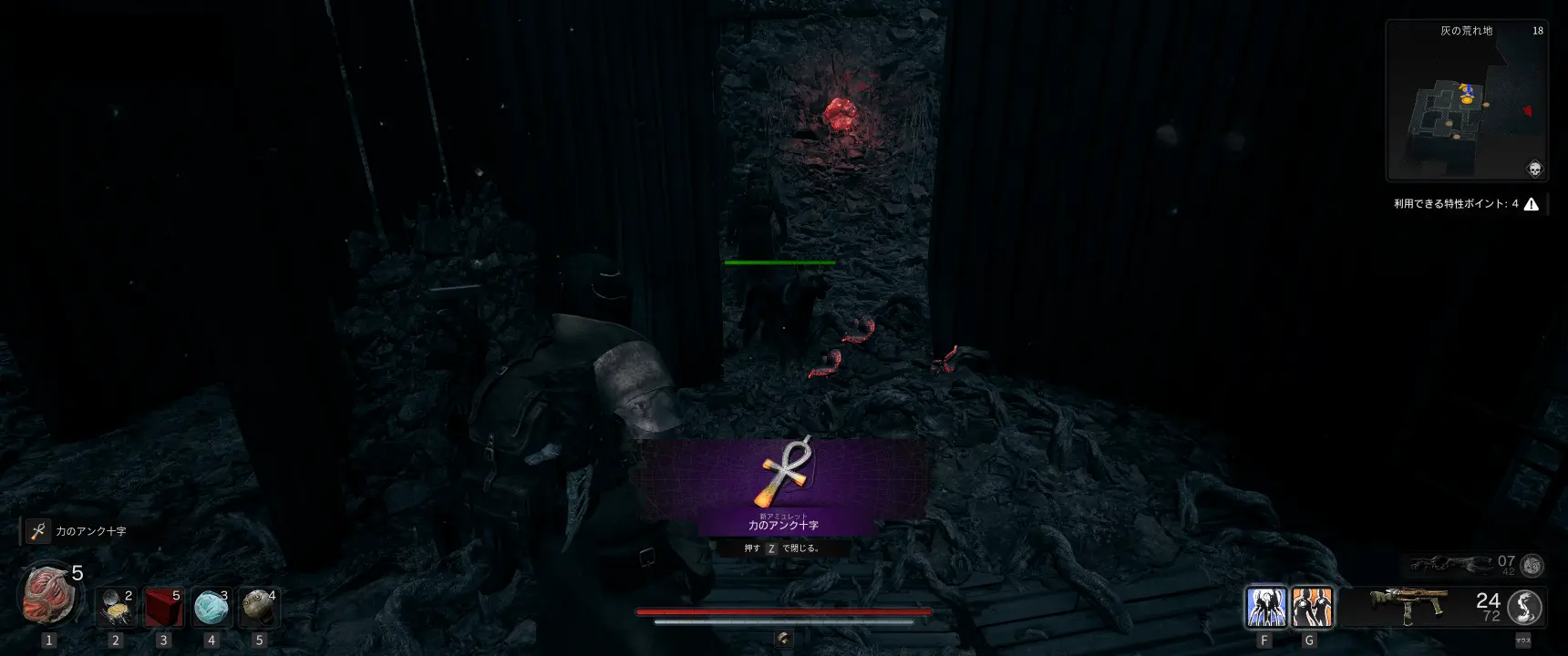 車両置場を抜けた先のワールドシャードがある建物の2階には力のアンク十字がある。