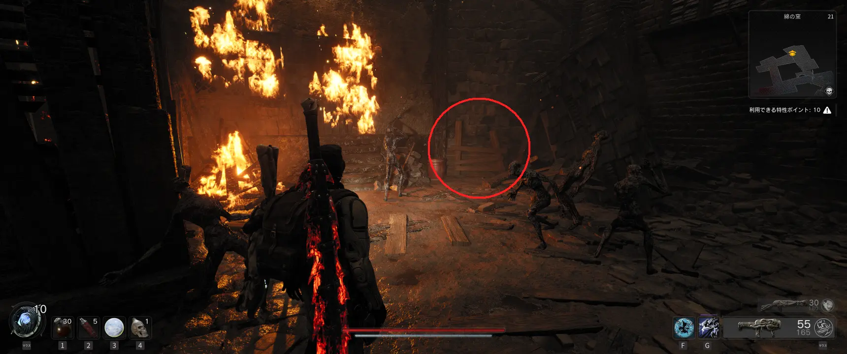 レソムの燃え盛るダンジョン (綿の窯肉屋の住居) でランダムに発生するイベント。イベントエリアに行くには壁に空いた穴を探す必要がある。