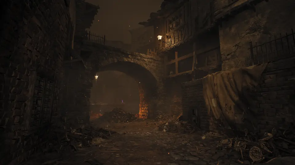 路地裏の最奥にはアミュレット浄化の石が、その少し手前の左手にある小屋の中にはクエストアイテム木箱が落ちている。木箱はインベントリでインタラクトすることができ、開けると中にアミュレット肖像のペンダントが入っている。