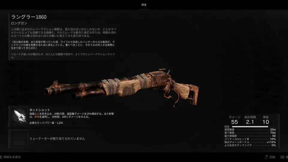 ロングガンは3つある武器スロットの内の1つで、ライフルやショットガンと言った大型の武器がこれにあたる。