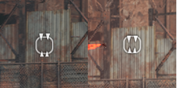 「武器が完全に圧縮される」というのはレティクルの見た目の事で、撃ち続けていると牙のような部分が閉じていき、枠の中に収まると「完全に圧縮された」ということになる。射撃を止めると瞬時に元の状態に戻る。