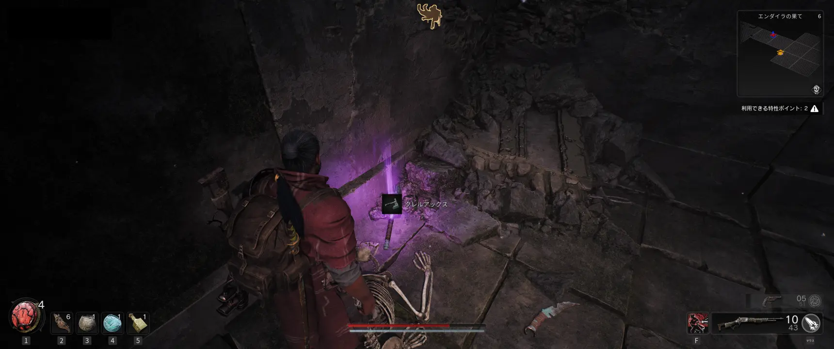 ゴール後、元のエリアに戻るはしごの正面の壁は幻影の壁になっており、通り抜けると脈打つ心臓が拾える。