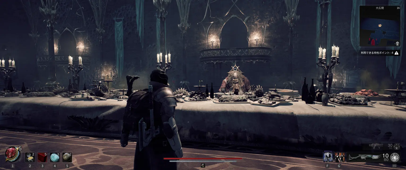 テーブルには饗宴の主が座っており、料理を食べるよう促される。並べられた料理に手を付けると、プレイヤー全員に飢餓の病害が付与され、イベントが始まる。