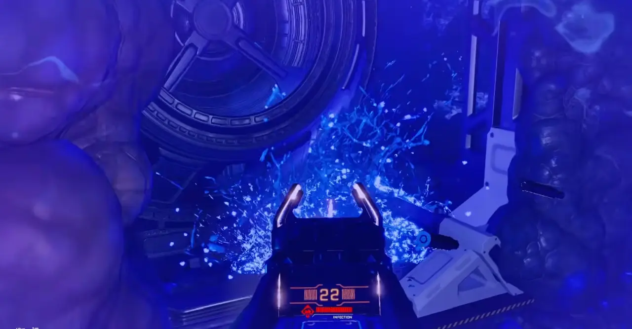 敵を倒しつつ画像の経路で冷却ステーションを経由しつつバックアップ発電機へ向かい、発電機に張り付いている汚染物質をすべて破壊する。発電機周辺は感染スモッグの影響でシールドが機能せず、敵も大量に出現するので手早く電源の回復を済ませよう。