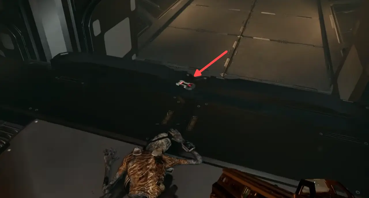 メインエンジン階層に戻ったら制御センターに続くゲートを開け、切断された遺体の側に落ちている