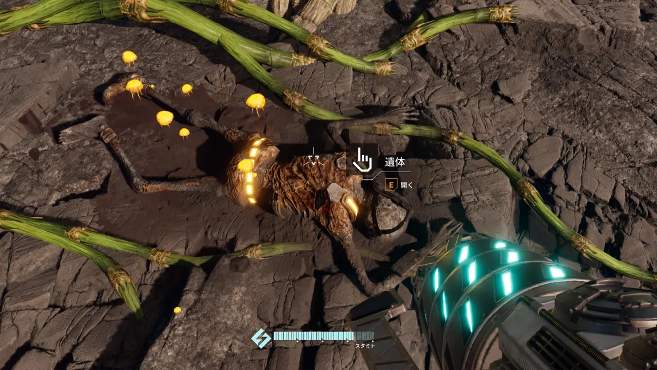 アルカディア-7の各地には前任者たちの遺体が無数に残されており、遺体を漁ると有用なアイテムを回収することができる。
