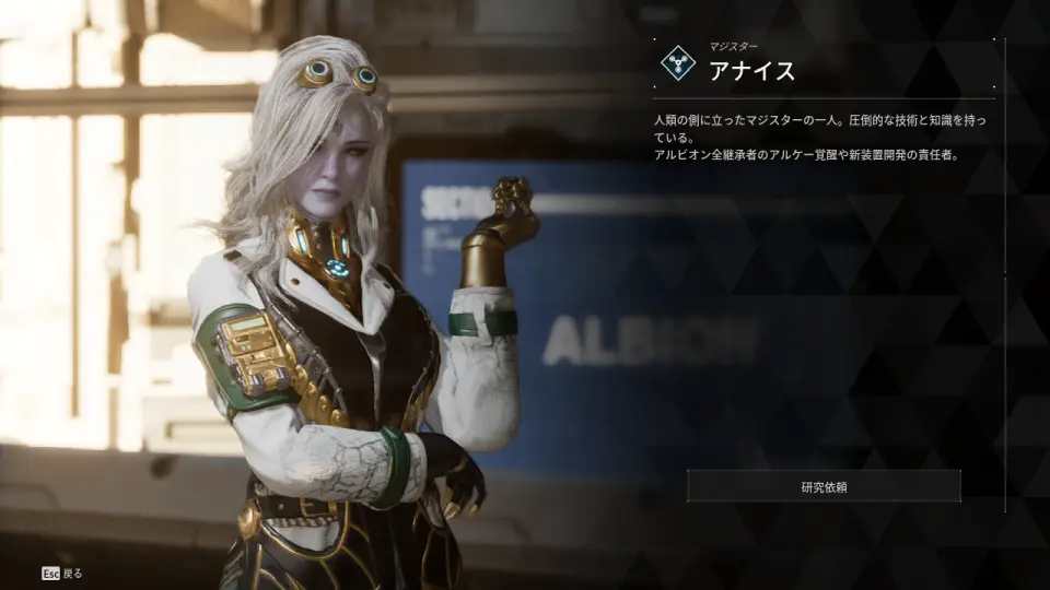 アルビオンにいるアナイスに話しかけると、様々なアイテムの研究を進めることができる。