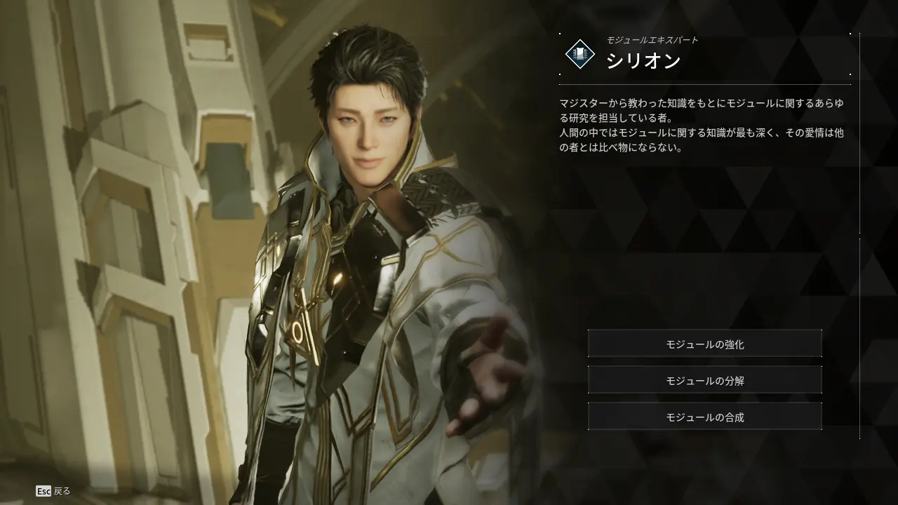 アルビオンにいるシリオンに話しかけると、モジュールの強化や分解、合成を行うことができる。