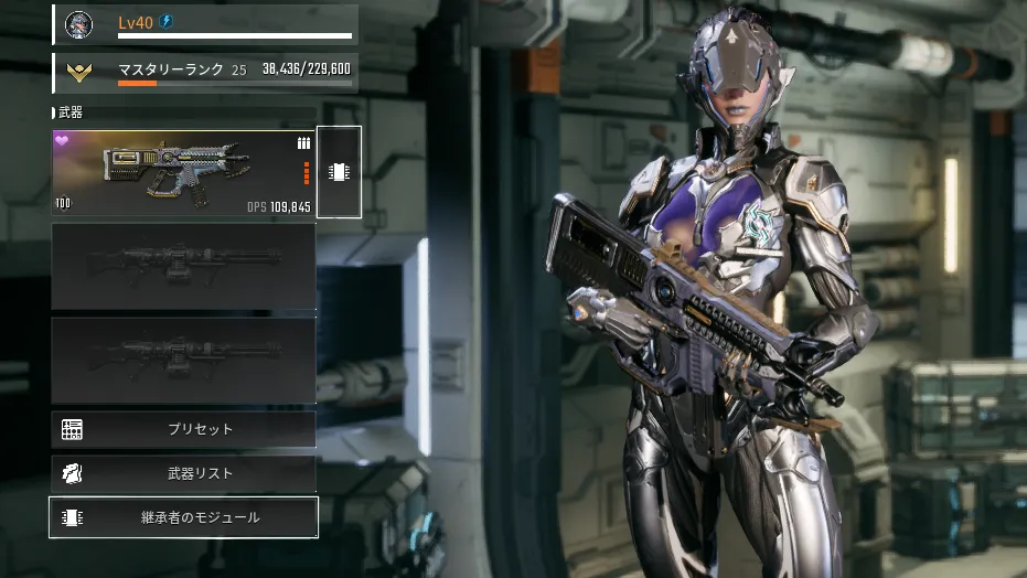追加設定を行う前の状態でのモジュールの最大容量は、レベル40時点で継承者も武器も50。レベルが低い状態だと最大容量も低下するが、マスタリーランクを上げると、低レベルの状態での最大容量が上昇する。