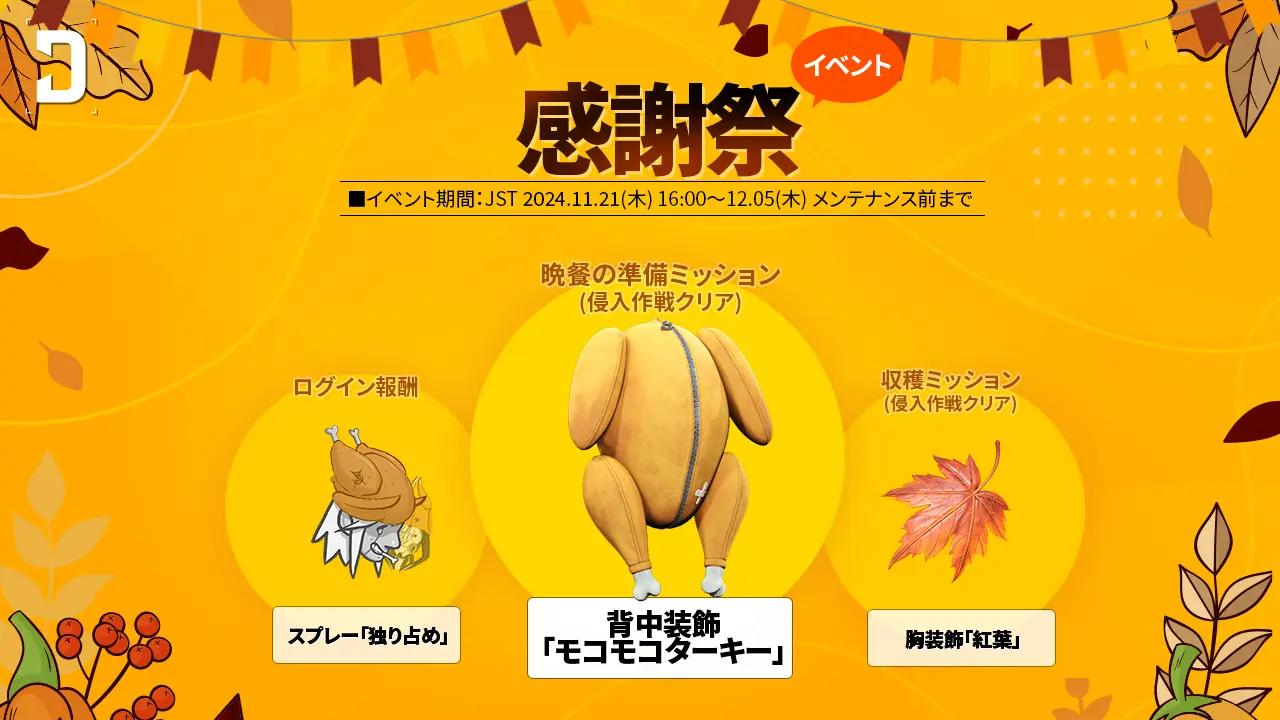 開催期間:JST 2024/11/21 16:00 - 2024/12/05 メンテナンス前まで