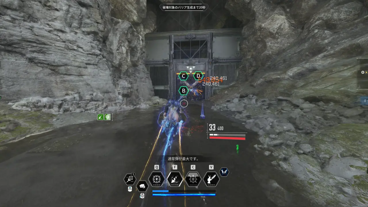 演算装置の起動に成功した場合、20秒間、通路を塞いでいる障壁にダメージが通るようになる。時間内に障壁を生成している4つの装置を破壊できれば、先に進めるようになる。20秒が経過してしまった場合は、もう一度同じ手順で演算装置を起動する必要がある。