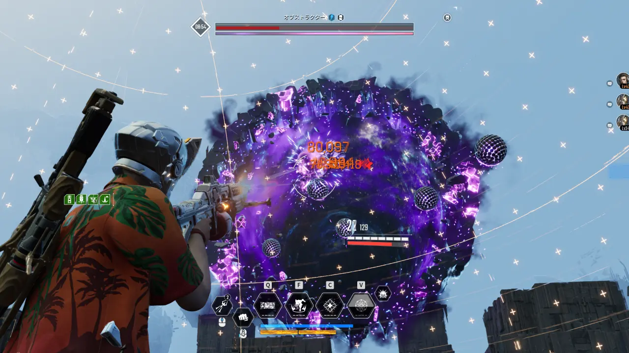 玉はダメージを与えると破壊することができるので、銃撃や範囲攻撃型のスキルを使ってオブストラクターに吸収される前に破壊しよう。オブストラクターが一定以上のヴォイドエネルギーを吸収してしまうと、プレイヤー全員に即死攻撃が飛んできて迎撃失敗となる。