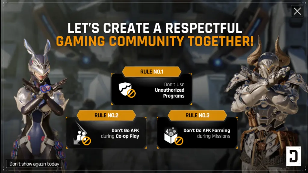 非公認の外部プログラムの使用や、公開セッションで他のプレイヤーとプレイしている中での放置稼ぎは基本的に禁止されており、悪質であると判断された場合は永久BANを受ける可能性もあるため注意しよう。