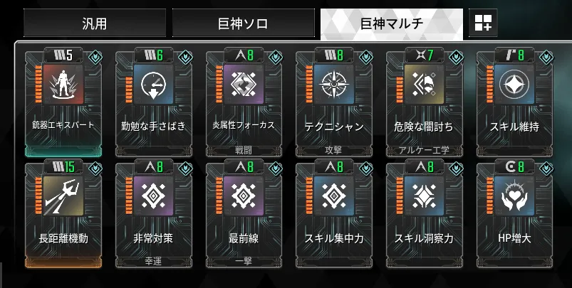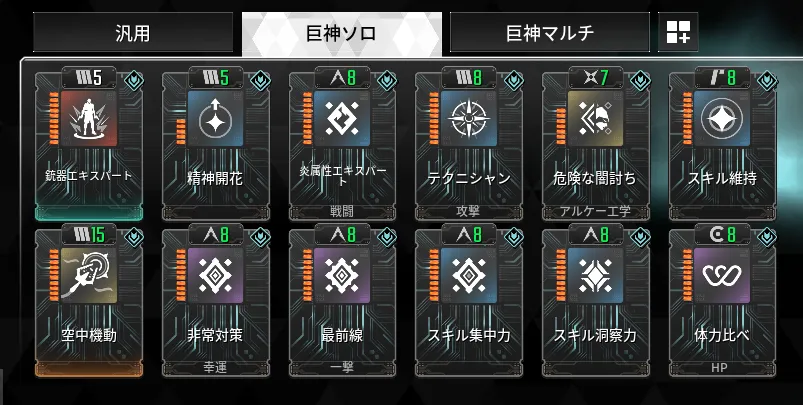 スキル洞察力、が挙げられ、さらに対巨神においては、オーバーキル1回のダメージを伸ばすため、