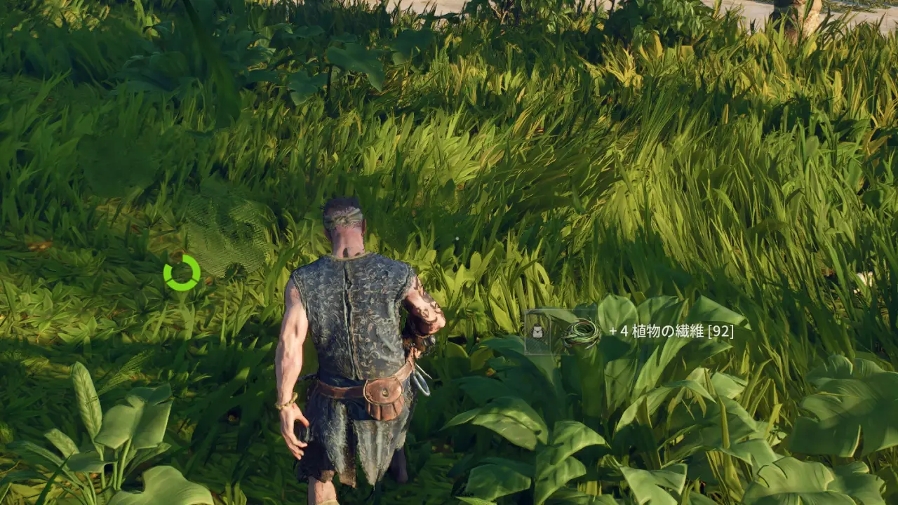木材や石は地面に落ちているものを拾い、植物の繊維はそのへんの草を攻撃して集める。