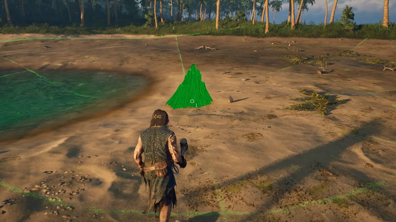 まずは焚き火を設置して拠点の範囲を決め、それから他の建築物を設置していく。焚き火の設置場所はとりあえず海が近ければ問題ない。