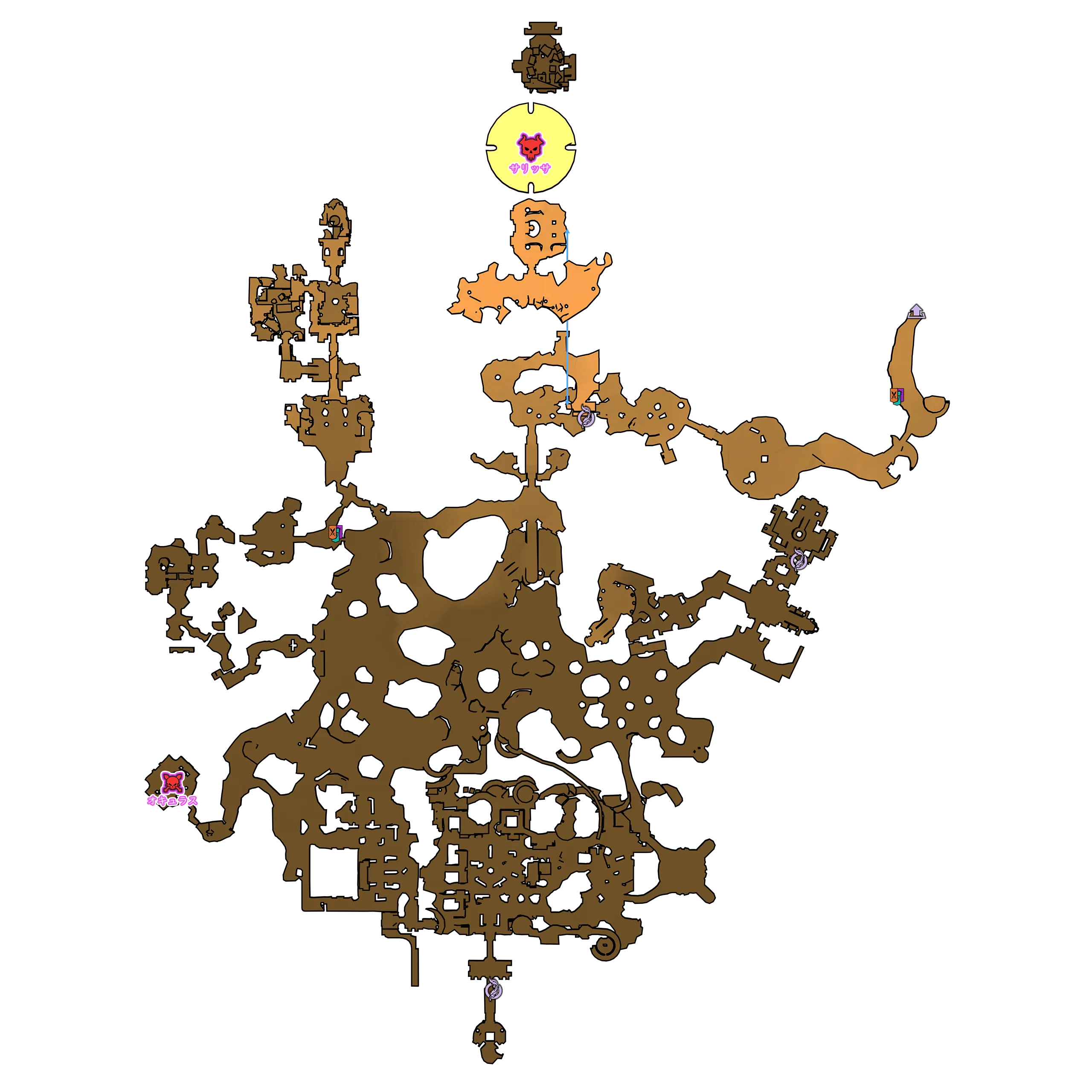 オーバーワールドでカーノックの壁をオッス・ゴル・ネクロポリス方面に出た後、北西に進むとある。