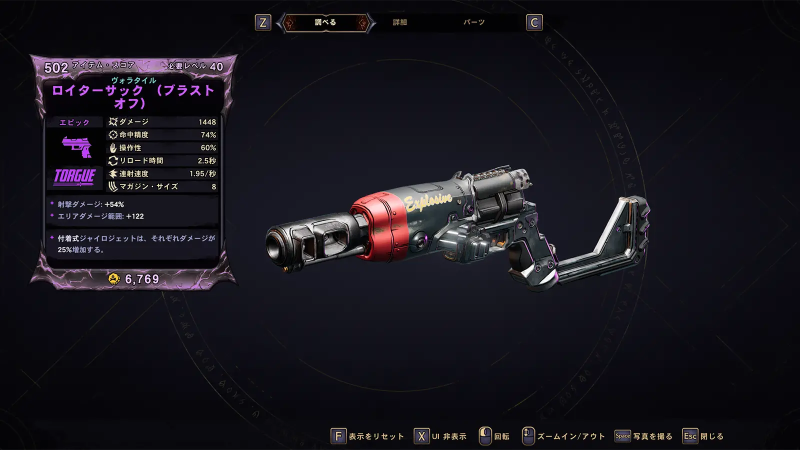 クロスボウタイプのルーダイトを除いたトーグ製ピストルの中では最もダメージが高くなりやすい。