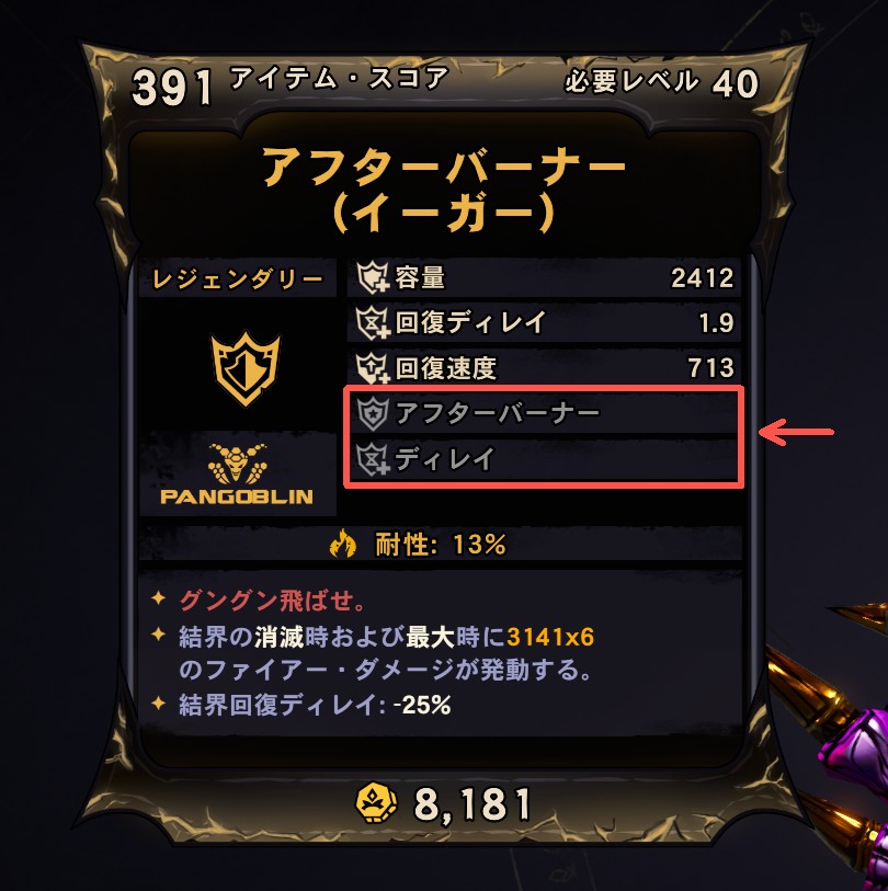 ![]() | ディレイ 結界回復ディレイ: -25/-40/-50%。 |