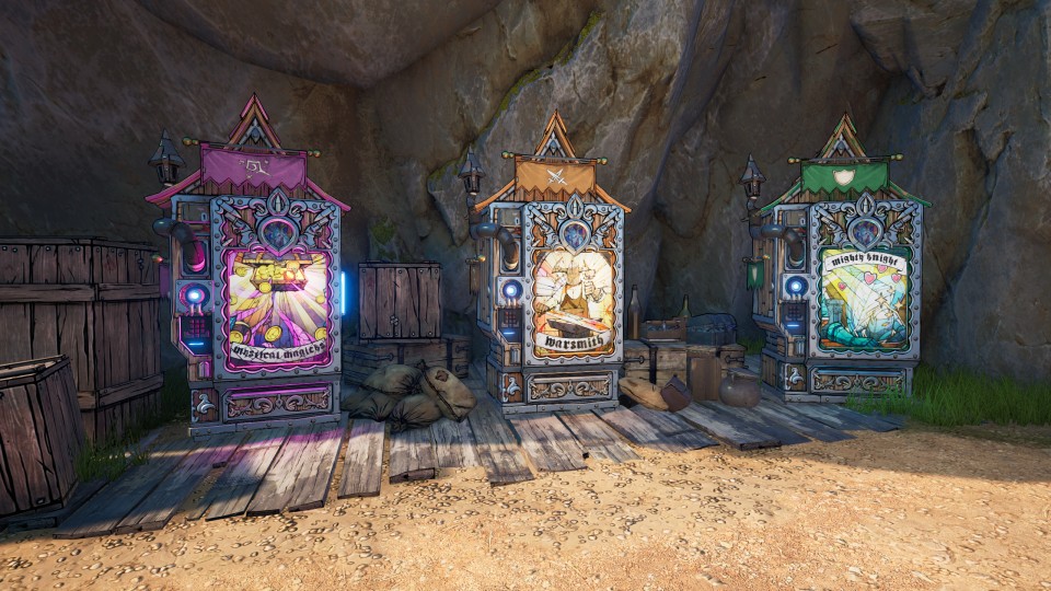 結界とアーマーを取り扱う自動販売機。アーマーは使用中のクラス以外のパワーを強化するものも含まれる。