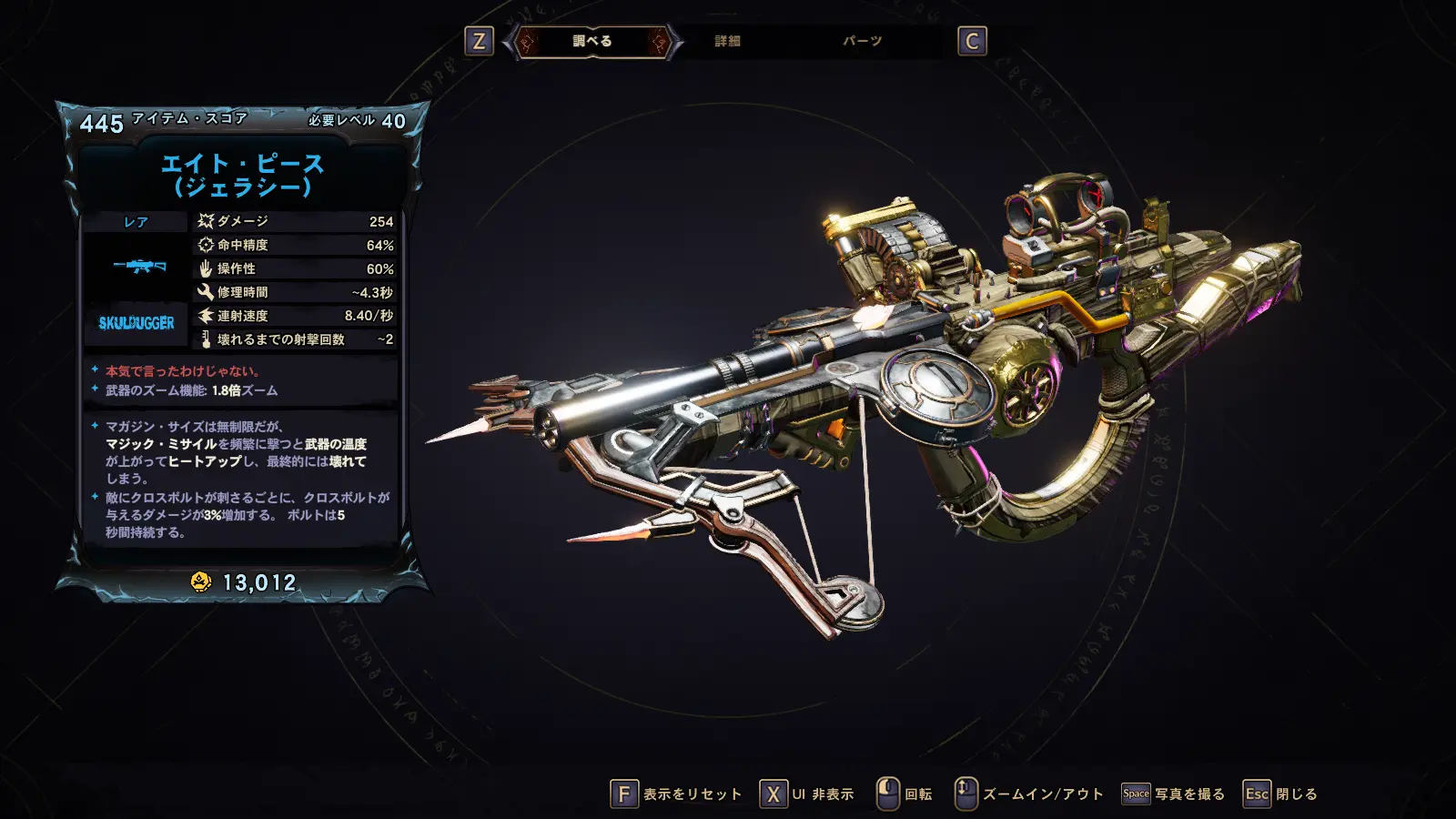 射撃時に一定確率でクロスボルトの代わりに地形で跳弾するマジック・ミサイルを発射する。発動確率はヒートアップするほど高くなる。