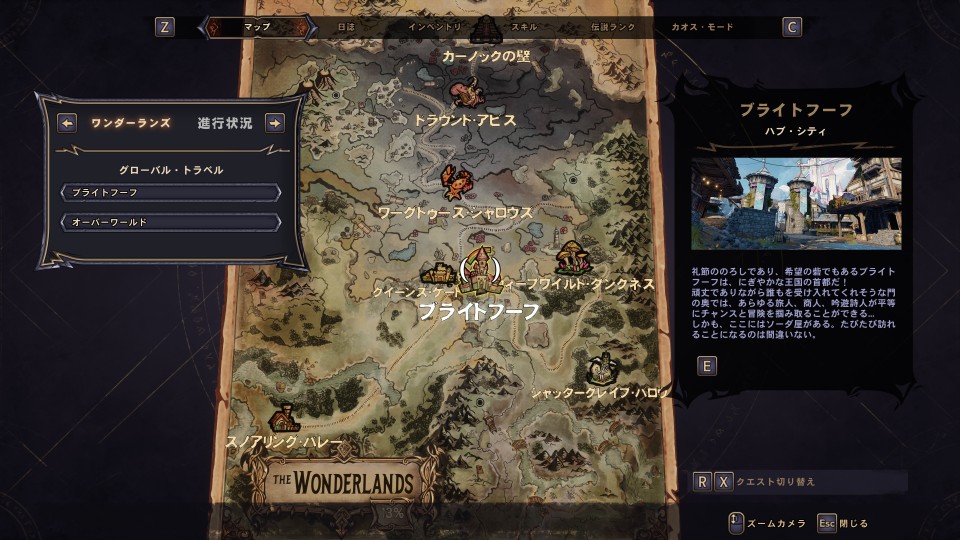 『ワンダーランズ ~タイニー・ティナと魔法の世界』のワールドは独立したマップを持つ複数のロケーションで構成されており、各ロケーションはオーバーワールドから直接歩いていくか、マップメニューからのファストトラベルで行き来できる。