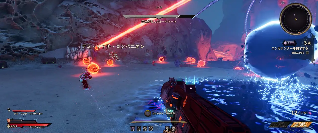 グルーパトートの攻撃方法は、フロスト・オーブを除けば、あとはダークマジックの槍を放つのみ。放った槍は複数のオーブに分裂して地面を転がるので、上空のグルーパトートを視界に入れながら対処するのはやや難しいが、それほど密度が高いわけでもないため無視してもあまり痛手にはならない。
